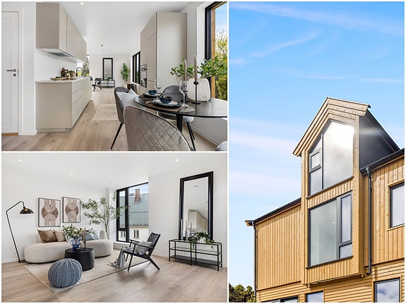Nyoppført 3-roms selveierleilighet med gode kvaliteter over to plan. Boligen leveres med Beige kjøkkeninnredning fra IKEA med kvalitetshvitevarer fra Bosch og Electrolux. Badet er flislagt med store beige 60 x 60 fliser med mosaikkfliser på gulv i dusjsonen. Á konto oppvarming i felleskostnadene, samt grunnpakke TV/Internett. I tillegg til leiligheten medfølger en bod i felles bodkjeller. Leiligheten er innflytningsklar og kan leveres omgående.