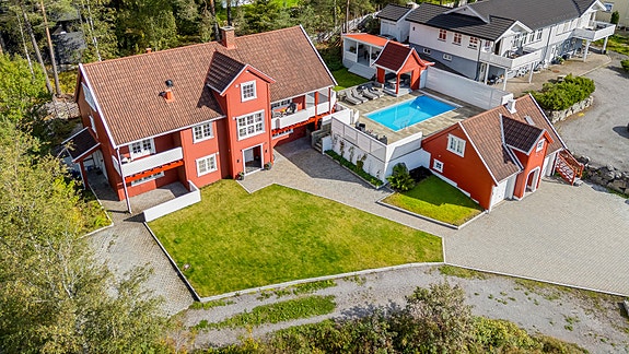 Stor familiebolig med basseng, to utleiedeler og super barnevennlig beliggenhet i blindvei
