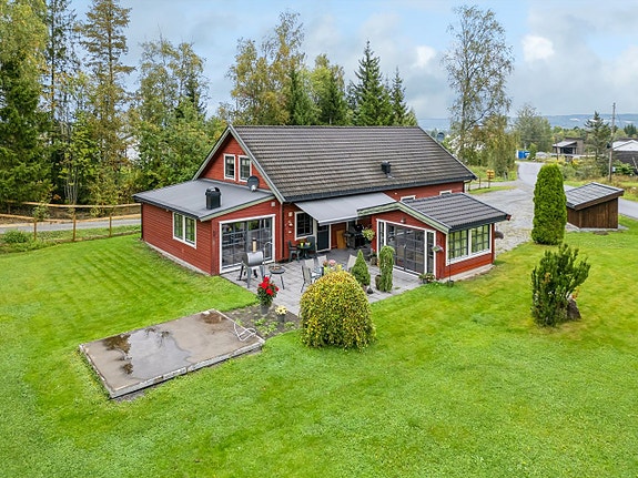 Enebolig oppført i 2007 over 2 etasjer. Inntilbygget stor dobbelgarasje.