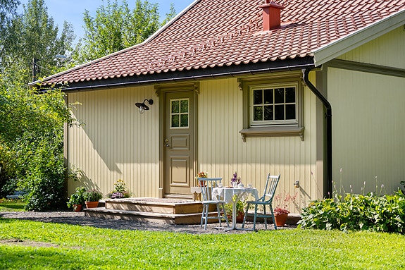 - Stor, solrik tomt med frodig hage, frukttrær, bærbusker og hyggelige uteplasser