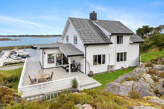 Boligen ligger på en romslig tomt i overkant av ett mål, og har store grøntareal samt flotte uteplasser opparbeidet. Småbåthavn er kun et steinkast unna boligen, samt Falkhytten med alle servicefasiliteter en kort kjøretur unna!