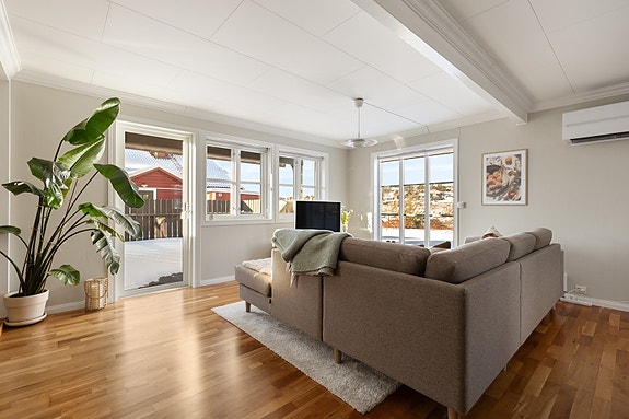 Pent oppusset bolig over 2 plan. I hovedetasjen har man entré, nytt og pent kjøkken, romslig stue og trappegang. I underetasjen er det 3 soverom bad og bod. Boligen fremstår lys og tiltalende med store vindusflater i stuen som slipper inn rikelig med dagslys. Herfra har du flott utsikt mot Songekilen og Tromøysund.