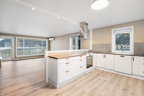 Leiligheten er svært pent beliggende like ved sjøen sentralt på Kyrksæterøra. Her bor du med fantastisk utsikt utover Hemnfjorden og gode solforhold.