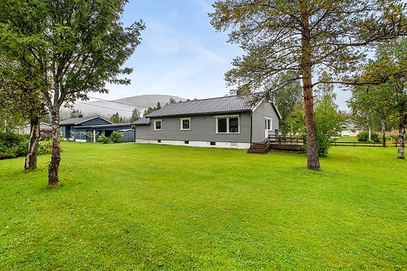 Tomten er tilnærmet flat og byr på fine utearealer for familien, med plass til lek, trivsel og beplantning. Boligen ligger i et barnevennlig område med kort vei til skole, barnehage og dagligvarebutikk. Samtidig er det kun en 25 minutters kjøretur til Mo i Rana, der du finner alle byens fasiliteter og servicetilbud.