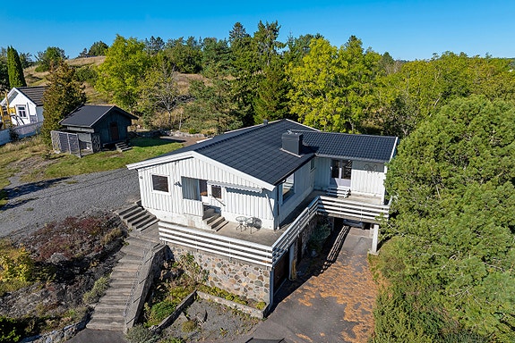 Eldre enebolig med herlig beliggenhet - høyt og fritt med fin utsikt mot Lofterød. Oppgradering kreves.