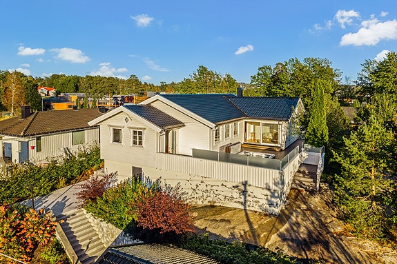 Her får du leilighetskomfort med friheten av en enebolig. Her får du et moderne alternativ til toppleilighet. Huset er plassert på et lite høydedrag som gir en privat følelse, utsyn over omgivelsene samt gode solforhold. Den store terrassen gir deg en skjermet uteplass med massasjebad, perfekt for avslapning og sosiale kvelder. Dobbel garasje med varme i gulvet og automatisk port gir både komfort og funksjonalitet.