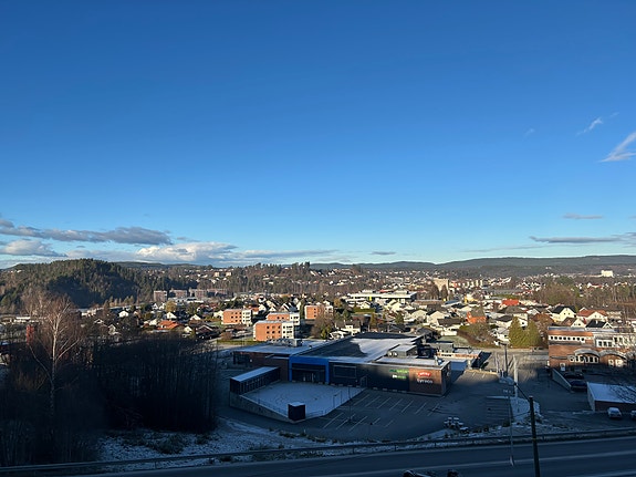 Det er gode sol- og utsiktsforhold, kort gangavstand til butikker, apotek, offentlig kommunikasjon.