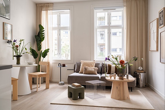 Leiligheten byr på god takhøyde, store vindusflater og en romslig entré med mulighet for garderobeskap. Stuen ligger i åpen løsning mot kjøkkenet, som ble oppgradert i 2018, og gir en lys og sosial sone. Videre finner du et pent flislagt bad fra 2018 med moderne innredning og opplegg for vaskemaskin, samt et soverom med plass til dobbeltseng og garderobeløsning.