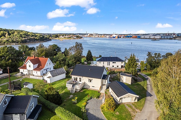 Flott eiendom, med en særdeles fin beliggenhet, i et tilbaketrukket og rolig bomiljø, på Kråkerøy. Boligen ligger i en blindvei ca. 70 meter fra vannet og det er lite trafikk rundt boligen. Fra eiendommen har man god utsikt mot vannet og innseilingen inn til Fredrikstad. Utsikten kan nytes fra stuen, eller fra en av de mange fine stedene rundt omkring på tomten. Det er 5 km. til Fredrikstad sentrum, 2,6 km. til Lunde skole og 4,5 km. til Kråkerøy ungdomsskole. 750 meter fra boligen finner man badeplassen og sandstranden Løytnantsbukta. Det er gjort mye med boligen de siste årene bla. nytt tak og ny trapp til, og innredning av boligens 2. etasje, flere nye vinduer m.m.