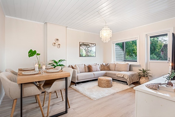 Pen og oppgradert 2-roms med enkel adkomst - Sydvendte og solrike uteplasser - Fredelig nabolag i grønne omgivelser