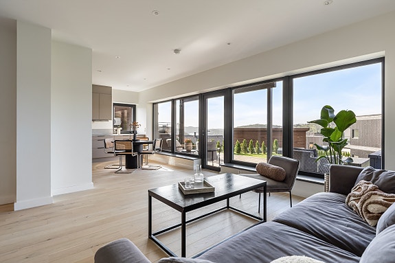 Stilren og rå leilighet i 1. etasje fra 2023 med tre soverom og utsikt - Eksklusivt uteareal! Muligh. for garasje