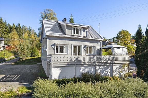Enebolig over tre plan med fire soverom og to bad beliggende i naturskjønne omgivelser.