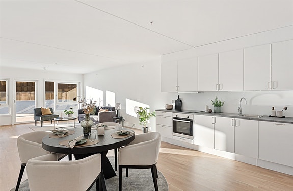 Åbol - ca 2 kilometer nord for bykjernen i Sandefjord. Det er også felles takterrasse på begge bygg til glede for beboere. Her vil man kunne nyte naturen utenfor sin egen leilighet, men samtidig ha en sentral beliggenhet. For deg som ønsker et aktivt liv så ligger vakre Hjertås som nærmeste nabo - kun 300 meter unna! Hjertås har ved flere anledninger blitt kåret til Sandefjords vakreste friluftsområde, og passer utmerket til aktiviteter både sommer og vinter. Fantastiske utsiktspunkter, oppkjørte skiløyper, lavo og turstier gjør at alt ligger til rette for en aktiv hverdag. Nærbutikken vil du finne rett rundt hjørnet - da det planlegges dagligvare i tilknytning til prosjektet. Det vil også bli bussholdeplass utenfor, så her kan man bare la bilen stå i garasjen. Ønsker man å ta fatt sykkelen eller bena er det gang- og sykkelsti helt ned til sentrum. Ellers er det kun 3 minutters kjøring i bil før man er ute på E-18 - perfekt for deg som pendler i jobben.