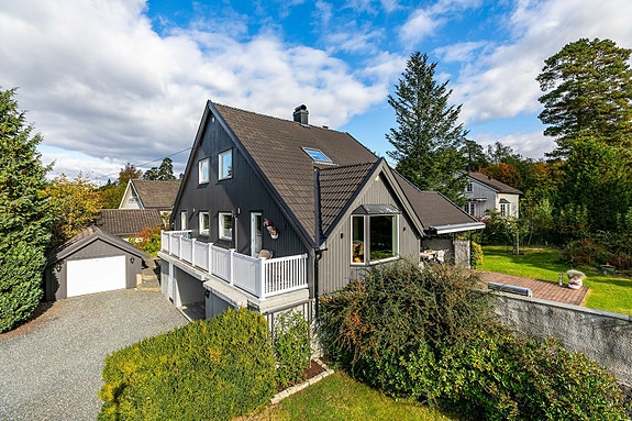 Innholdsrik enebolig i høyden på Jeløy, med frodig hage og fin utsikt. Ny fasade i 2021. Rolig og barnevennlig.
