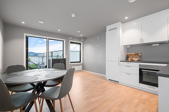 Flott 2-roms selveier med moderne standard og god planløsning. Adkomst direkte fra bakkeplan og fin utsikt mot fjorden.