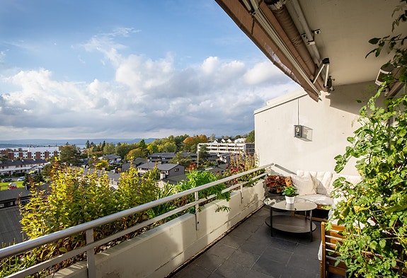 Meget attraktiv og lys 4-roms topp- og endeleilighet med balkong og terrasse - Nydelig utsikt - Garasjeplass m/lader