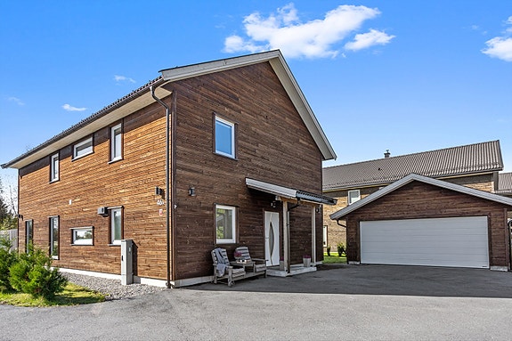 Boligen ble oppført i 2020 og fremstår som svært velholdt. Planløsningen er godt utnyttet med åpen stue- og kjøkkenløsning, ett soverom i første etasje og fem soverom i andre etasje.