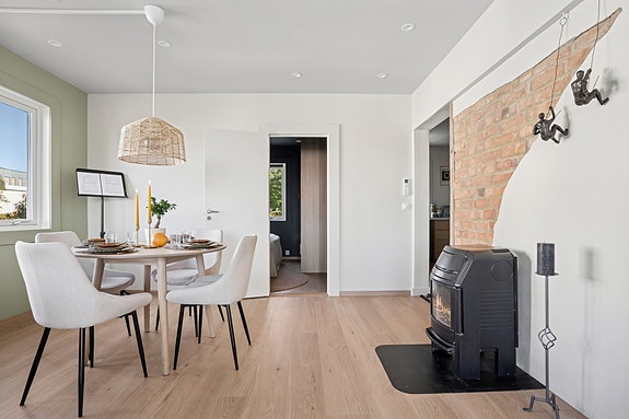 Leiligheten har en god planløsning og er påkostet de senere årene med nytt bad i 2020 og kjøkken i 2025. Energimerkingen er betydelig oppgradert med nye vinduer i 2024, varmepumpe og etterisolert tak. Gulv og overflater er nye fra 2025, og en fantastisk nypusset teglsteinsmur gir leiligheten en unik og elegant helhet. Her får du en vestvendt balkong med unik utsikt og gode solforhold. Kort vei til sentrum, skoler, barnehager, buss og dagligvare gjør hverdagen enkel og praktisk. Leiligheten har hage, god bodplass og en meget funksjonell snekkerbod.