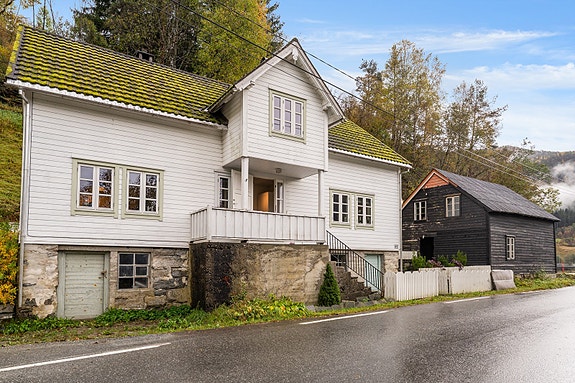 På eiendommen har du en innholdsrik enebolig, eldre låvebygg og en frittstående terrasse.