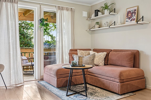Det moderne kjøkkenet fra 2021 gir et stilrent og funksjonelt preg, og den vestvendte balkongen som ble totalrenovert i 2025, byr på gode solforhold og fine kveldsstunder. Boligen disponerer også en romslig bod på hele 13 kvm i kjeller, som gir rikelig med lagringsplass.