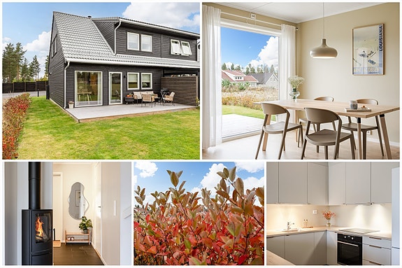 Lys, pen og lettstelt del av tomannsbolig fra 2023 med 3 soverom, vedovn og p-plass med lader. Solrik terrasse og hage!