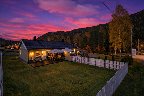 Dette er en moderne halvpart av tomannsbolig fra 2020 med alt samlet på ett plan. Boligen har en praktisk og luftig planløsning med gode lysforhold og trivelige oppholdsrom. Fra stuen er det utgang til en romslig terrasse på hele 32 kvm, med trapp videre ned til en frodig og inngjerdet hage.