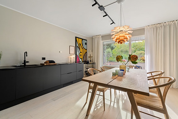 Designleilighet m/solrik balkong. Idyllisk utsyn. Nyoppusset og meget påkostet. Nye vinduer 2025. Fyring & v.vann inkl.