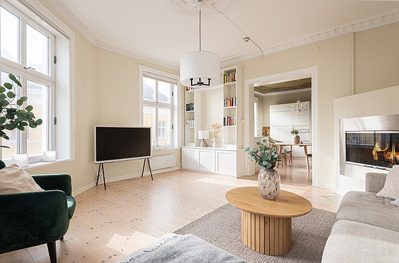 Klassisk og meget attraktiv 4-roms hjørneleilighet med vakre originale detaljer