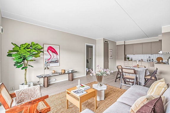 Leiligheten ligger sentralt til på Jordal, midt mellom Vålerenga, Ensjø og Kampen. Her bor du tilbaketrukket, men likevel sentralt, i et rolig bymiljø med nærhet til alle nødvendige fasiliteter. Dagligvarebutikk og kollektivtilbud ligger like i nærheten, og nærområdet tilbyr blant annet flotte parker og noen av byens beste bakerier.