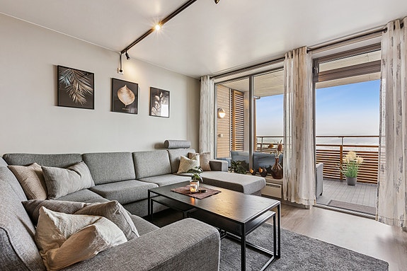 Flott 2-romsleilighet i 6. etasje med strålende sol- og utsiktsforhold | P-plass i parkeringskjeller | Heis i bygget