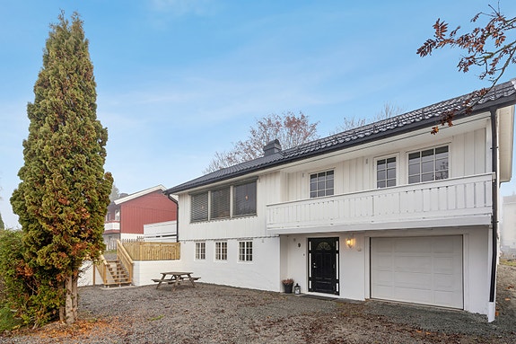 Ute finner du en stor terrasse med solrike sitteplasser og utsikt mot grønne omgivelser. Eiendommen har i tillegg garasje og gode parkeringsmuligheter. Her bor du i et rolig og barnevennlig område med nærhet til skole, barnehage, kollektivtransport og flotte turområder.