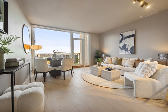 - Lys, romslig stue med store vindusflater