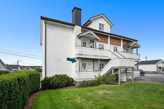 Leiligheten ligger i byggets 1. etasje og innehar bl.a. et godt soverom, en romslig stue med åpen løsning mot kjøkkenet, et stort bad, samt en solrik, vestvendt terrasse på ca. 4 m². Det følger med en utvendig bod i kjelleren på ca. 8 m².