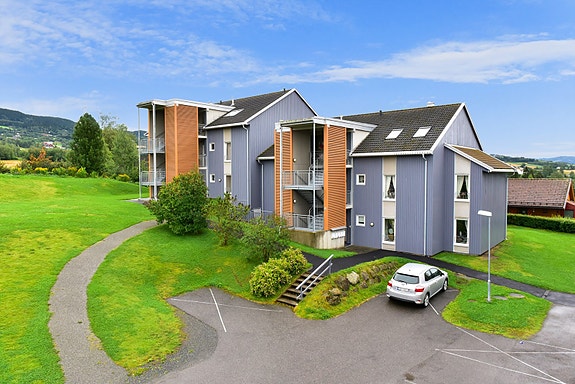 Treroms leilighet på populære Bæssmorjordet - to soverom - parkering i underjordisk garasje - heis - pen felles tomt