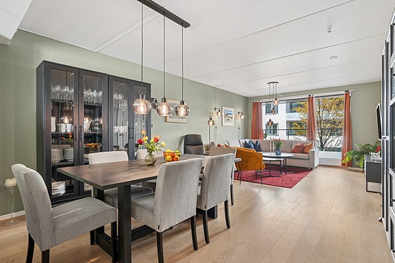 Fra leiligheten er det kort gangavstand til dagligvarefortetning, butikker, restauranter, universitet, bibliotek, kulturarenaer, treningssenter og gode kollektivmuligheter med buss og tog. Nærområdet byr på flotte turområder i skog og mark samt langs elvepromenaden.