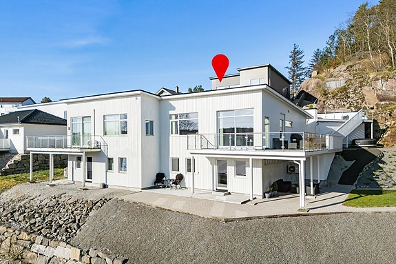 Velkommen til Hyllebærveien 18 - en moderne, smakfull og praktisk bolig som tilpasser seg mennesker i ulike livsfaser. Fotograf Diakrit v/ Arne Ove Østebrøt
