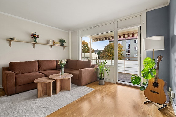 Lekker gjennomgående 3-roms med solrik, vestvendt balkong. V.vann & fyring inkl. Sentral beliggenhet.