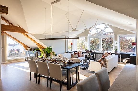 Særdeles lys og eksklusiv toppleilighet med vestvendt terrasse og heisadkomst (heis benyttes kun av 4. og 5. etg). Leiligheten gjennomgikk omfattende oppussing i 2024 og er betydelig påkostet med kvalitetsmaterialer.