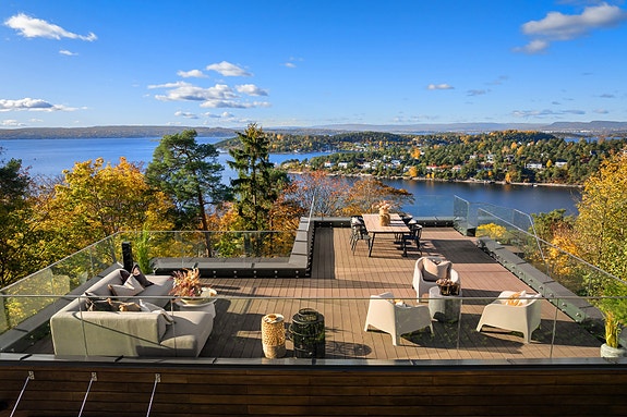 Lekker enebolig fra 2024 | Vidstrakt fjordutsikt | Hybel | 51 m² takterrasse | Usjenert uten innsyn | Innerst i blindvei
