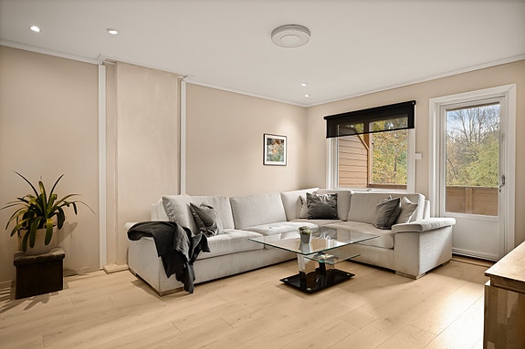Velkommen til Bøkeveien 3, presentert av ASK Meglergaarden v/ Tone Selfors Ekeland Lys og trivelig stue med store vindusflater og utgang til veranda
