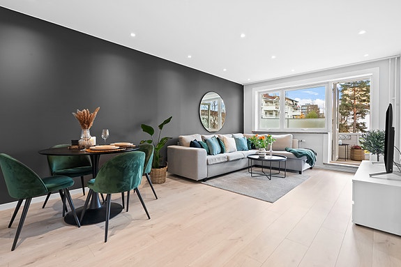 Haakon Tveters vei 70 er en lys og pen 3-roms i andre etasje. Beliggenheten er etterspurt og barnevennlig, med umiddelbar nærhet til barnehage/skole, Oppsal senter, T-bane og busstopp, samt kort vei til flotte turområder i Østmarka. Boligen har en overbygd, romslig balkong med gode solforhold og borettslaget kan skilte med store, grønne fellesarealer.