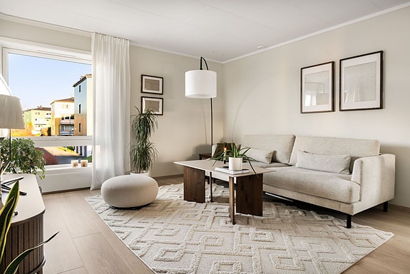 - Stor og luftig stue/kjøkkenløsning på 37,6 m²