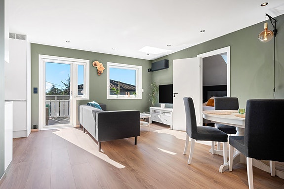 Velkommen til Veumveien 123C - dette er en meget moderne og tiltalende 2-roms leilighet som ligger i byggets øverste etasje. Leiligheten har en moderne og innbydende standard hvor det er lekre fargevalg som er gjennomgående i leiligheten. Store deler av leiligheten har blitt pusset opp den siste tiden. Det kan blant annet nevnes at det er nytt kjøkken i 2020, nye laminatgulv i 2020, nytt bad i 2024 mm. Det er en praktisk og gjennomtenkt planløsning.