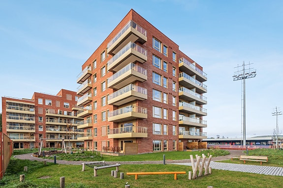 Skårerbyen under utbygging, noe som legger til rette for et helt nytt sentrumsliv i Lørenskog. Her er det nylig etablert en fantastisk ny bypark på 1500 kvm med flere ballplasser, og ikke minst er Skårersletta bygd om til en attraktiv bygate. Med butikker og kafeer på gateplan får man en urban kobling mot grønne lunger, parker, torg og sosiale møtepunkter i gangavstand fra leiligheten.