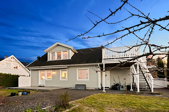 På populære Sjåen i Kragerø finner du denne flotte og innholdsrike eneboligen - perfekt for deg som ønsker god plass, solrike uteområder og et trygt, barnevennlig bomiljø. Fra eiendommen har du en fantastisk utsikt, og fra terrassen oppe kan du nyte et vakkert skue mot havet. Her kan du virkelig senke skuldrene og ta inn den flotte kveldssolen som varer langt utover kveldene.