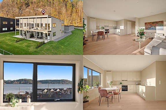 Delikat leilighet fra 2024 på Lundejordet med flott sjøutsikt, sentral beliggenhet og meget god boligstandard. 2 sov.