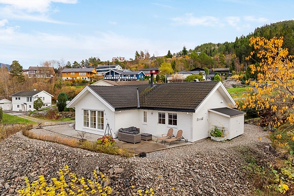 Einebustad frå 2015 med fjordutsikt - solrik tomt, vestvendt terrasse og alt på eitt plan. Garasje!