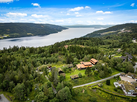 Her får du fire boenheter fordelt på hovedhus, separat enebolig og garasjebygg med tre garasjeplasser og to leiligheter. I tillegg finnes sjarmerende eldre låve, stabbur og to laftede hytter fra Hallingdal - alt samlet på et solrikt tun med sjelden atmosfære.
