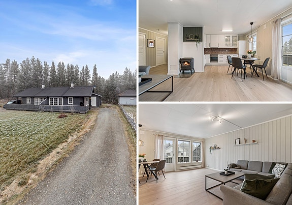 Det ble i 2025 lagt nytt gulv i gang, stue og kjøkken.