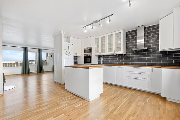 ROMSLIG 3-ROMS PÅ HELE 76 KVM (BRA-i) | 3 EKSTERNE BODER I KJELLER | FJORDUTSIKT FRA TERRASSE | PARKERING | KJØKKEN TG1